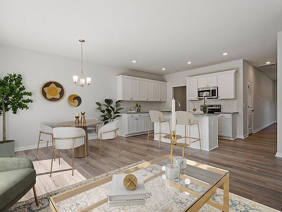 Discover this beautifully designed 2-story END UNIT townhome in the desirable Georgia's Landing community! This modern home offers a spacious open-concept kitchen with a large island that flows seamlessly into the living area, perfect for entertaining or relaxing. The main floor features sleek luxury vinyl flooring, a practical drop zone by the garage for added convenience, and a private patio for outdoor enjoyment. Plus, take advantage of additional under-stair storage. Upstairs, the spacious primary suite offers three closets and a ceiling fan for added comfort. Two additional versatile bedrooms can easily be adapted to suit your needs. Located in a vibrant, lifestyle-focused community, Georgia's Landing offers resort-style amenities including a pool with a lazy river, scenic walking trails, a dog park, and a game room. Enjoy the ease of on-site conveniences like playgrounds, pocket parks, and direct access to community trails. Ideally located just minutes from Downtown Raleigh, the Farmers Market District, and close to major highways, Georgia's Landing provides the perfect blend of convenience, style, and an active, outdoor lifestyle. Home will be ready February 2026! Call today to hear about our current incentives and move in packages!