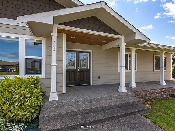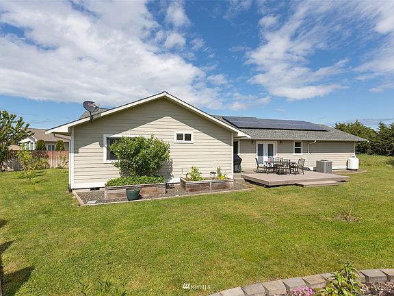 Neat & tidy plus in town describes this great home in Eagle Mt. Estates! Solar panels are owned so PUD costs are minimal. Beautiful hardwood and tile floors. Spacious kitchen with slab-granite counters, stainless appliances & cabinet pantry. Kitchen range & fireplace are propane. Tank is owned. Primary bdrm/bath has walk-in closet, soak tub & separate shower. Deck extension makes entertaining enjoyable with lots of room for guests. Fruit trees, rhubarb & other plants have been added to landscaping. Privacy galore! Oversized garage is 737 sq ft so room for work bench & lots of storage. Driveway is long so plenty of off-street parking for guests. Skylight and HEAT PUMP, too.