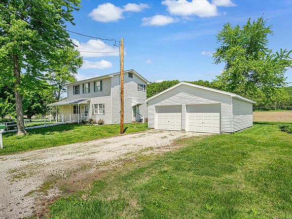 This spacious home, located in Fults, is ready for its new owners! Situated on almost a full acre, it boasts two oversized garages, one with electric and one without. Enjoy summer days on the covered front porch or take in the views from the bluffs in the backyard! Step inside the home and into the nicely sized living room with a dining area and a kitchen offering beautiful views from the sink window. There is a full bathroom located on the main level as well as a den with plenty of storage closets. Head upstairs to find three bedrooms and another full bathroom. The basement is unfinished and features a 200 amp sump pump. Some notable updates include: the septic system was last serviced in 2021, HVAC system replaced in 2018, water heater replaced in 2015, and the flat/front part of the roof was redone in 2014. The home features vinyl/aluminum siding, and the windows were replaced in the 1980s. Don't miss out on the opportunity for peaceful living in Fults!