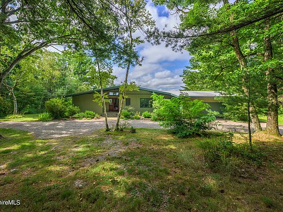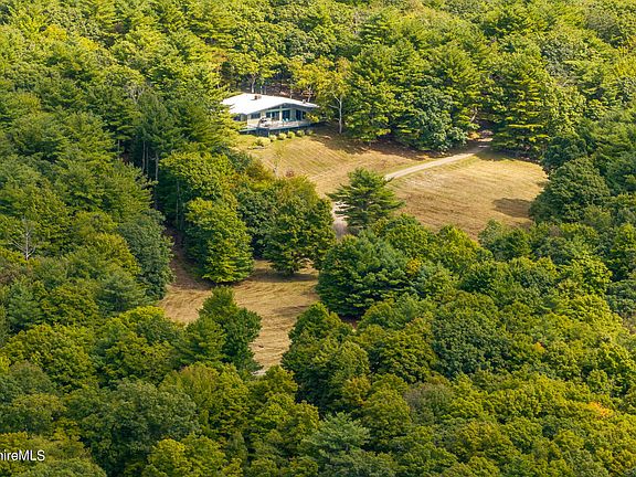 A gentle driveway weaves through woods and fields to the entrance of this mid century modern home nestled high on 47 acres. The main level is designed for open living and entertaining with the living room, kitchen and dining room all facing the panoramic views. Two bedrooms both ensuite, a study and a cozy 3-season porch with wood stove complete this level. A deck spans the western view.