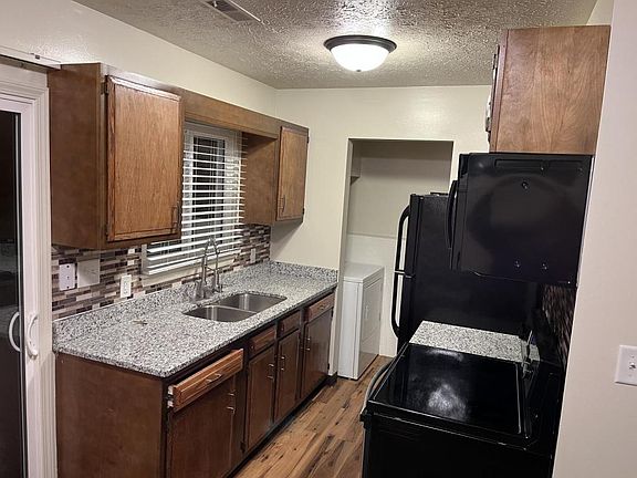 The kitchen featuring stunning new granite countertops and a convenient dishwasher, making meal preparation and clean-up a breeze. The open layout seamlessly connects the kitchen to the living area, perfect for entertaining or simply relaxing after a long day. Step outside to your private patio, an ideal spot for enjoying morning coffee or unwinding in the evening. With an air conditioner and washer/dryer included, this apartment provides all the modern conveniences you need for a hassle-free living experience.