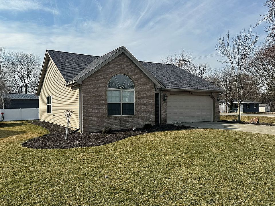 Corner lot in a nice quiet neighborhood in Bluffton, Indiana. This is a clean, well kept 3 bedroom 2 bath home with vaulted ceilings, central air, gas heat and two car attached garage. The home was built in 1996. The master bedroom has a full bathroom and a walk-in closet. New in 2022: interior paint throughout the house & garage, kitchen appliances, cabinets, countertops, sink, faucet & garbage disposal; flooring & vanity top in master bath, flooring in the entryway & second bath, 2 way blinds in the master bedroom & living room; water expansion tank and pull down stairs in the garage. New in 2023: new roof, vinyl plank flooring in the kitchen & dining room, shower & toilet in the master bathroom. Other features: Washer and Dryer hookups, pull down attic stairs in the garage, garage door opener with mounted keypad, concrete patio and shed.