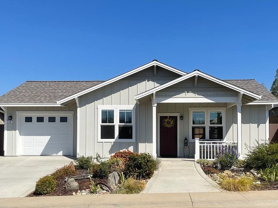 Just a short walk from historic downtown Murphys, this stunning 2 bed, 2 bath home offers both comfort and elegance with over $80,000 in thoughtful upgrades. Built by the owner-contractor, every detail has been meticulously crafted to create a seamless blend of functionality and style. Step inside to find an open floor plan with waterproof flooring throughout, granite countertops, and custom woodwork trim. The gourmet kitchen is a chef's dream, featuring a grand kitchen island, quartz countertops, and wood cabinetry. The luxurious bathrooms include custom showers and modern finishes. Enjoy year-round comfort with central heating, AC, and a whole-house fan with timers. Milgard windows, copper plumbing, and whole-house insulation ensure efficiency and durability. Relax by the cozy propane fireplace or step outside to the beautifully landscaped backyard oasis. The master bedroom opens onto a gorgeous private patio, perfect for enjoying morning coffee. The outdoor space includes a covered front porch, a back patio, and a lush yard featuring a peach tree, apricot tree, honey fig tree, and fragrant rosemary and thyme bushes. A French drain system ensures optimal drainage, while fire sprinklers, recessed Canne lights, a tankless water heater, an insulated Liftmaster garage door, and concrete walkways surround the property for added convenience. With an electric car hookup ready in the garage and a jackshaft garage door opener, this home is as practical as it is luxurious. Experience the perfect blend of modern amenities and custom craftsmanship in this one-of-a-kind Murphys home. Don't miss the opportunity to make this exceptional property your own!