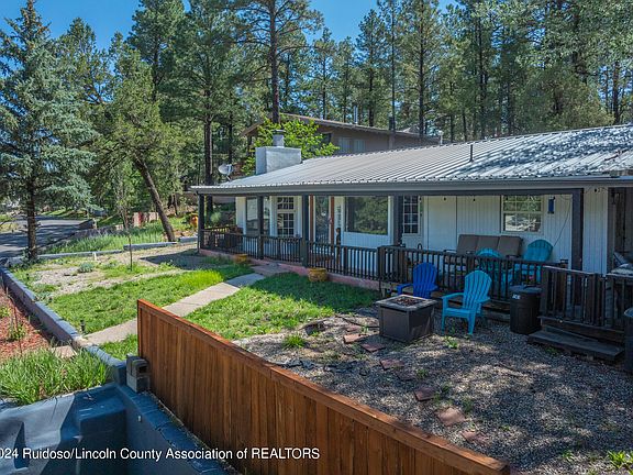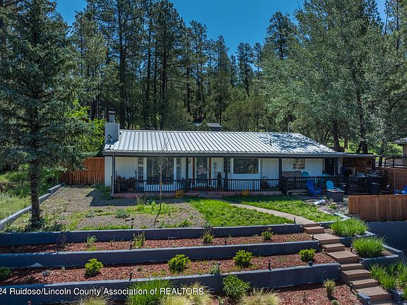 Nestled in the heart of Ruidoso, this beautifully updated, fully furnished property offers modern amenities and classic charm. Located within walking distance to midtown shopping and the golf course, convenience and leisure are just steps away. The circle driveway provides ample parking and leads to a terraced front yard. Inside, the open-concept living area seamlessly integrates with a contemporary kitchen featuring bright granite countertops and modern lighting. The expansive master suite offers a luxurious en suite bathroom with a large soaking tub. The second bedroom accommodates a king-sized bed, while the third bedroom is perfect for guests or children.