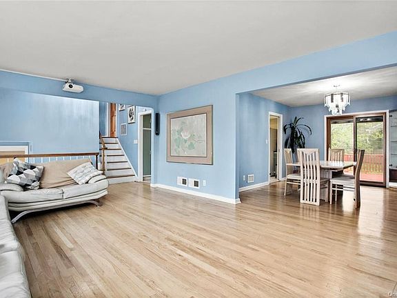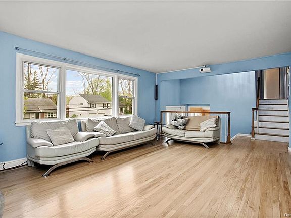 This bright and sunny split level home on almost .25 acre is ready for you to make it your own. The rooms are large with hardwood floors and lots of windows. You will find a great floor plan and space for working from home, entertaining or just relaxing both inside and outside. A welcoming foyer introduces you to this airy home. Living room with large window and projector, formal dining room and eat-in kitchen are located on first level. A large deck is accessed from the formal dining room. Three bedrooms and full bath on the second level. Finished family room/den is on ground level with sliding glass doors to patio. The lower level has full bath, laundry, utilities, office space. Flat, private yard with patio and deck. Great location close to Golden Horseshoe Shopping, houses of worship, Five Corners in Scarsdale, Davis Elementary and bus to Scarsdale train station.