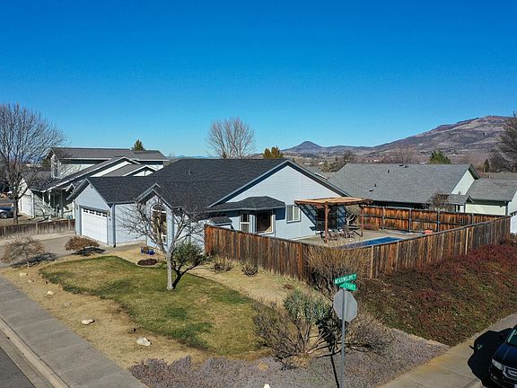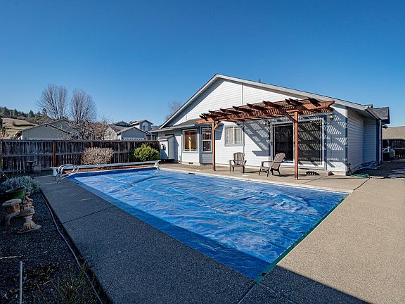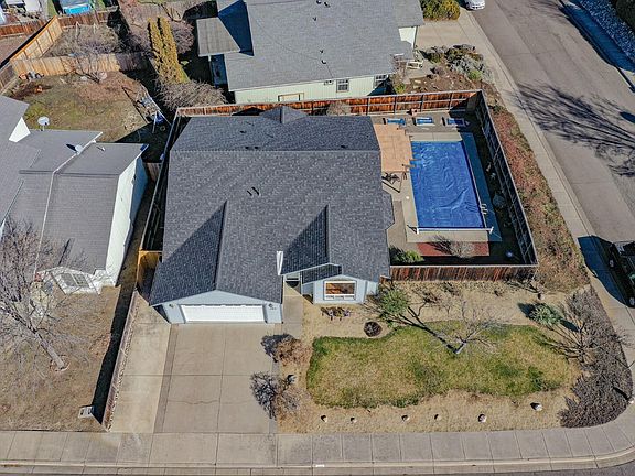 Meticulously cared for 1996-built 3 bedroom, 2 bath, 1639 square foot single-story home on a 18/100 acre lot with a fenced backyard, lattice-covered patio with mountain views and an inground pool. The home features an open living and dining area with easy-care laminate flooring, cozy gas fireplace with tile surround, tall ceilings and lots of light. There is a vaulted kitchen with loads of cabinetry, Corian countertops, eating island, tile floors and extra living area with slider access to the patio and pool. The large vaulted primary bedroom includes two good-sized closets and ensuite bath with double basins and walk-in shower with built-in seat, plus there are two guest bedrooms, one with a walk-in closet and built-in window cabinet, a hall bath with tub/shower and convenient hallway laundry with separate laundry sink. Well-maintained yard with mature plantings, newer roof, pool pump and pool cover. Good-sized double garage and extra driveway space for your boat or other toys.