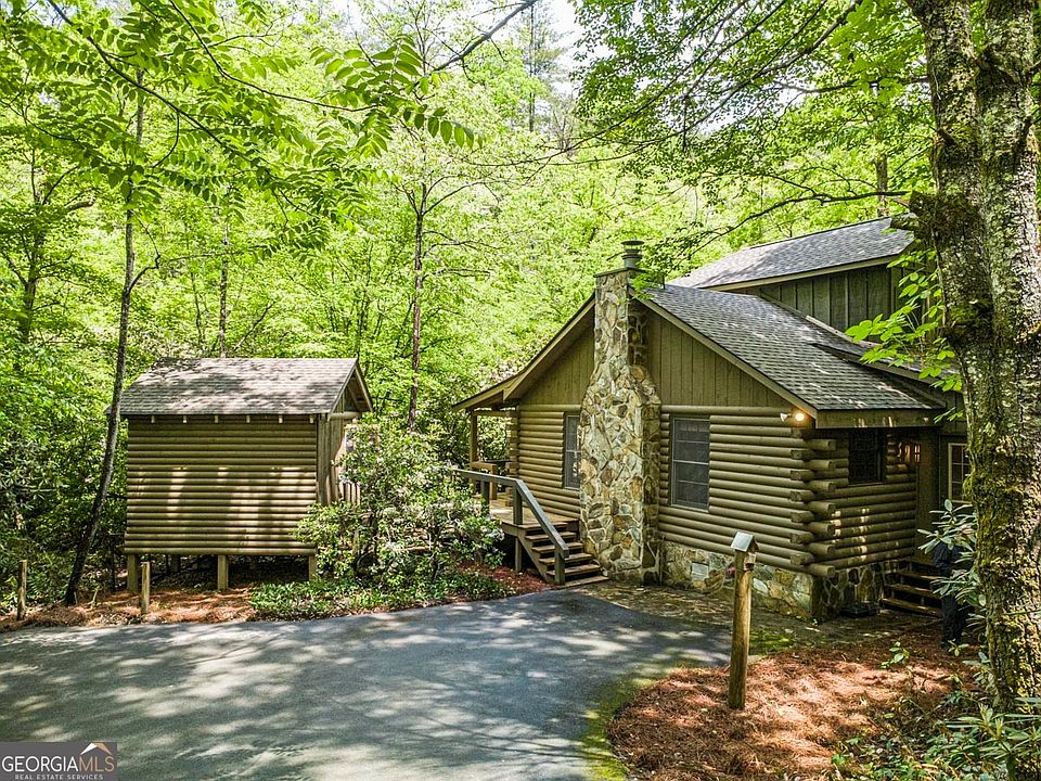 Welcome to Fannin County... the trout capital of Georgia and the cabin at 240 Donna Lee Lane is no exception! This cozy, 2 bedroom, 2 full bath, creekside log cabin has approximately 281 feet of creek frontage and great, swift-moving, noisy white water on 1.15 acres. Plus, an additional 1.85-acre lot across the creek with approximately 100 feet of creek frontage adds to your level of continued privacy. This section of the creek is stocked by the community twice a year with rainbow trout. The property has a large paved parking area and level land by the creek with native mountain laurels and rhododendrons. The updated kitchen has granite countertops, custom cabinets, and stainless steel appliances. Both bathrooms have been updated with tiled showers and granite counters. Cuddle up to the wood-burning fireplace in the great room. Laundry/mud room with full-size washer and dryer. New roof in 2024. The expansive front porch sits just off the water's edge, as does the additional screened gazebo and large firepit area. Being sold completely furnished, with mountain-inspired decor. Welcome home to Donna Lee Lane on Hothouse Creek!!