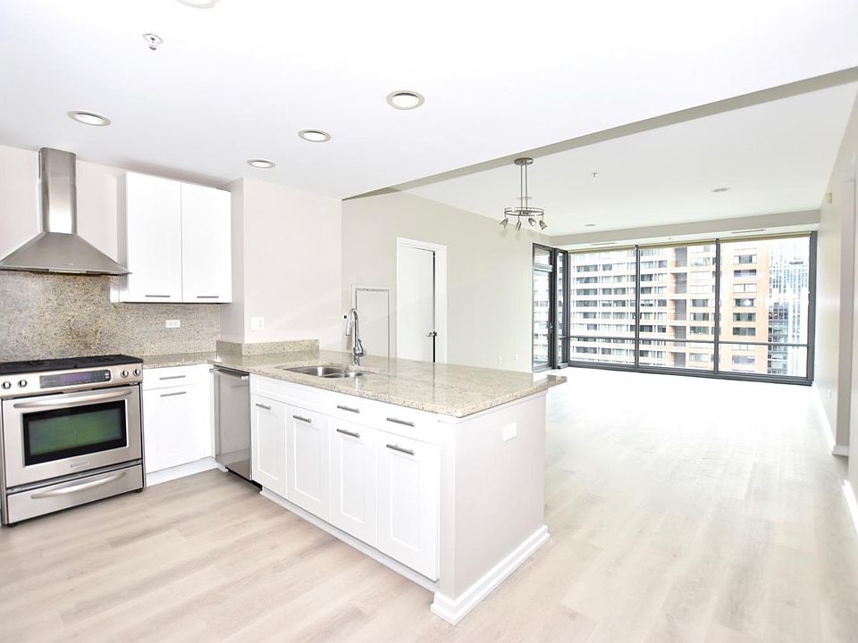 NEWLY RENOVATED! Come check out the skyline views from this beautiful two-bed, two-bath plus DEN. This property features northwest city views, euro style open kitchen, stainless steel appliances, granite countertops with a breakfast bar, a large covered private balcony, an in-unit washer/dryer, and much more. The building offers stellar amenities, including 24-hour door staff, two fitness centers, a party room, an outdoor plunge pool, and landscaped sundeck. Ideal location close to Northwestern, Whole Foods, AMC Movie Theater, Michigan Ave., and Ohio St. Beach! A Prime garage parking spot is available for an additional fee. Contact us today for a private showing.