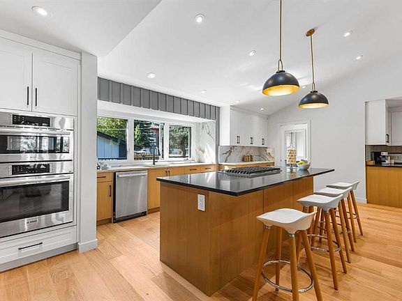 A complete transformation in Calgary’s premier lake community. Taken down to the studs and rebuilt over 10 months, this Lake Bonavista bungalow is effectively brand-new, combining timeless design with modern luxury. Professionally designed, the home reflects an expertly curated palette with high-end finishings, quartz throughout, and no expense spared. Every detail, from structure to style, was meticulously planned with function and quality in mind. Inside, soaring vaulted ceilings with spray foam insulation showcase plenty of pot lights, integrated speakers, and a dramatic open-concept design. The chef’s kitchen blends Bosch appliances with a KitchenAid downdraft gas cooktop, quartz counters with a full quartz backsplash, and a custom wet bar/cappuccino station with wine fridge. The layout is anchored by a floor-to-ceiling fireplace, with flat-painted ceilings and extensive pot lighting throughout. The primary retreat offers a custom walk-in closet and spa-inspired ensuite with dual vanities, rain shower, and body sprays. A second bedroom, stylish 4-piece bath with tub/shower, and a custom mudroom with built-ins, laundry, and dog wash complete the main floor. The lower level is equally impressive, with a sprawling rec room, an incredible wet bar, games area, sauna, another bedroom, gym, and a showpiece 4-piece bathroom. Outside, the home features a fully redone exterior with Smart Board siding, stone accents, and all new windows, complemented by new exposed aggregate poured front steps, landing, and a walkway that extends around to the back. The fully finished oversized double heated garage with a large opening gate completes this property. Thoughtful upgrades include all new plumbing and electrical, on-demand hot water, new backflow preventer, extensive lighting including stair lighting, and a functional layout designed for today’s lifestyle. Enjoy exclusive year-round lake access, swimming, paddleboarding, skating, and community events, in one of Calgary’s most prestigious communities.