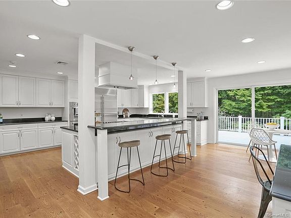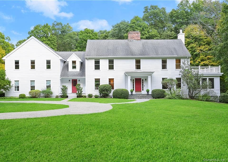 Distinctive Country Colonial on peaceful winding lane in scenic Pound Ridge, NY--moments to Scotts Corner and New Canaan amenities and 60 minutes from NYC. This inviting home is spacious and bright, with a huge chef's kitchen and expansive windowed family room with cozy stone fireplace overlooking a level yard and wooded property that abuts 70 acres of watershed land. A light-filled sunroom off the living room provides extra first floor space for office or play. Four second floor bedrooms include an impressive primary bedroom wing with an office/nursery, reading area, laundry room, bath and two custom walk-in closets. The 1,737 sq ft finished basement is bright and flexible, offering additional office, exercise and entertainment space, or guest quarters with separate entrance. A roomy yet cozy home for living and entertaining. Tranquil and private yet accessible to all local conveniences. New furnace, water filtration system and hot water tank. Identified pool site.