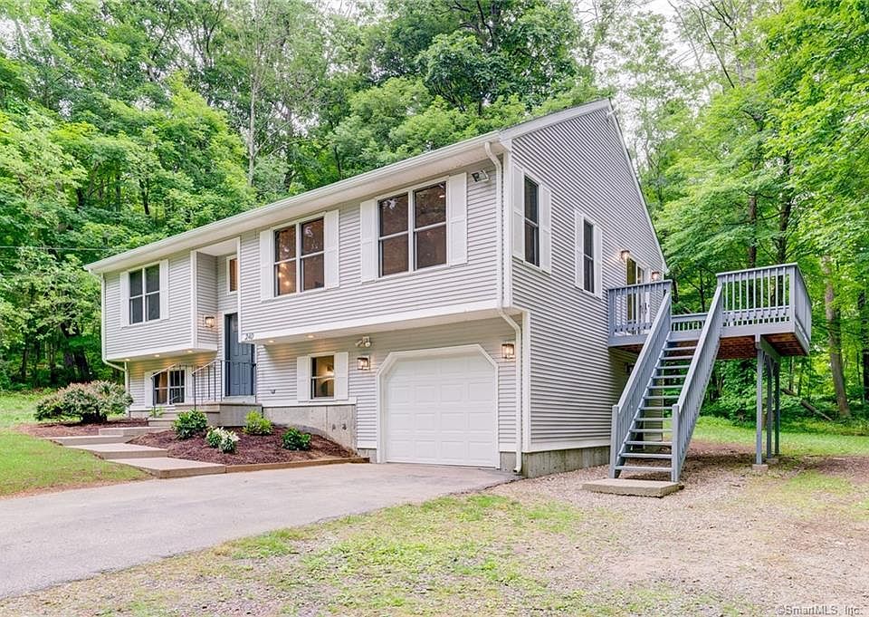 Remarkable and remodeled best describes this raised-ranch homestead, located on a private drive off State Route 207, New London Country, Lebanon. Built in 1994 this finely maintained property is nestled on two (2) acres of lush New England forest. Brilliant interior finishes from flooring, to fresh paint, to the crisp and clean bathrooms and kitchen makes this home stand out. It's two bedrooms are ideally located on different floors, allowing privacy within the homes floor plan. Additionally both bedrooms are beyond oversized with spaces for a home office, sitting areas and much more. The Village of Lebanon is well known for it's mile long Green, Summer Farmer's Markets, Summer Concerts, 150 Active Farms and Mooween State Park. Lebanon is a small town with a population under 8,000. Commute time to Hartford or New London runs a quick and easy 30 minutes.