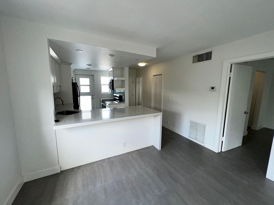 Beautifully remodeled corner unit on the top floor with a lot of natural light, impact windows & doors, updated and well maintained unit. The apartment consist of 1 large master bed room, 1 full bath and 1 half bath, and enclosed balcony which can be used as an office or studio area. The apartment comes with one assigned parking space and first come first serve designated guest parking. Walking distance to the beach with private access. The ultimate island bungalow!