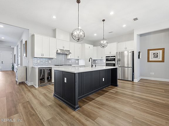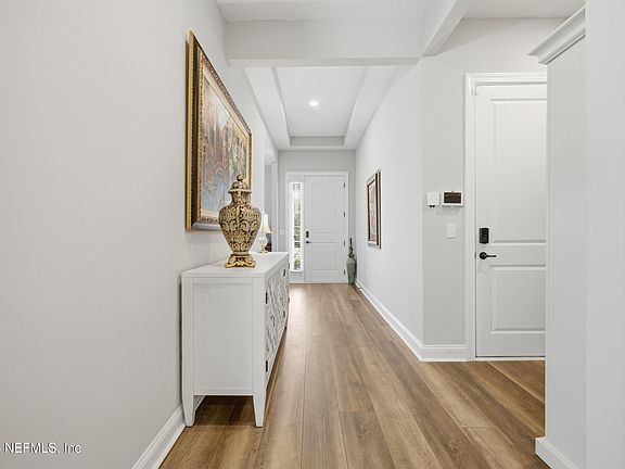 Why wait to build? This is a unique opportunity to purchase this like-new, two-year-old Toll Brothers Home. Single-story home with desirable 3-car garage backs to preserve in Mill Creek Forest. The heart of the home is the gourmet kitchen, featuring a generous island, stainless steel appliances and a natural gas cooktop. Gas fireplace in the family room with 10-foot ceilings. Vinyl plank throughout except bedrooms. There are 4 bedrooms, 3 full bathrooms, plus a flex room at the front of the home that could be an office/den. Screened 30x10 lanai overlooks trees. Room for pool! Upgrades include Ring security system, interior shutters, surge protector, gutters, extra insulation, central vacuum system, generator hookup, Tesla outlet, 8-foot garage doors. Mounted televisions convey. This home is walkable to the amenity center, which includes a pool, gym, yoga room, tennis court, tot playground, and walking trails. A-rated St. Johns County schools system. Some furniture negotiable.