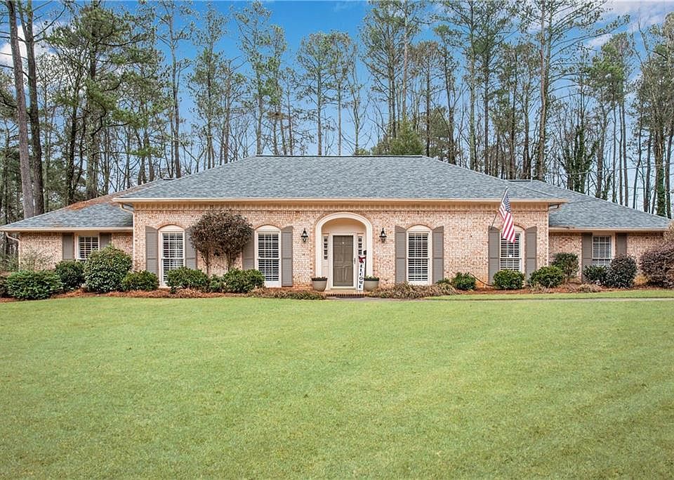 Fabulous one-level living in this beautiful 4-sided brick home sitting on a large professionally landscaped lot. The front yard with roses, azaleas, and large flower beds frames the classic French provincial home as you drive around to the reverse entry double garage. Entering this well-maintained and updated home you will find a cozy dining room for intimate gatherings or a home office. The kitchen has newer granite, appliances, and a convenient work island. The breakfast area has been opened to the spacious Great Room to create a more modern feel and is ideal for entertaining friends and family. In addition to the cathederal ceiling, the Great Room's focal point is a dramatic floor to ceiling brick fireplace with symmetrical French doors leading to the bright heated and cooled sunroom with new windows and sliding glass doors to the outside. The oversized master bedroom offers a renovated ensuite bath with double-vanities and beautifully tiled shower. The secondary bedrooms share the hall bath with updated shower, flooring, vanity and backlit vanity mirror. From the sunroom or the breakfast room there is an incredible back yard perfect for entertaining, gardening or relaxing at the stone firepit. The authentically bricked courtyard patio is ideal for morning coffee, evening beverages or bar-be-ques. The side yard is fenced and private for any fur babies to enjoy. The firepit is located in a natural wooded area beyond the garden areas. Additional recent updates include the architectural shingled roof, tankless water heater, HVAC compressor, double garage door, enlarged laundry room, custom plantation shutters, hardwood flooring and exterior paint. The quaint swim & tennis/pickle-ball neigborhood with a very social HOA is in the very heart of Roswell. It is ideally located within 10-15 minutes of downtown Roswell, Crabapple and Alpharetta, plus the award winning Roswell Area Parks and Recreation center.