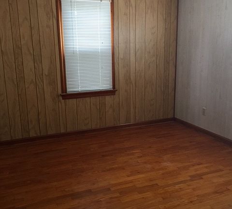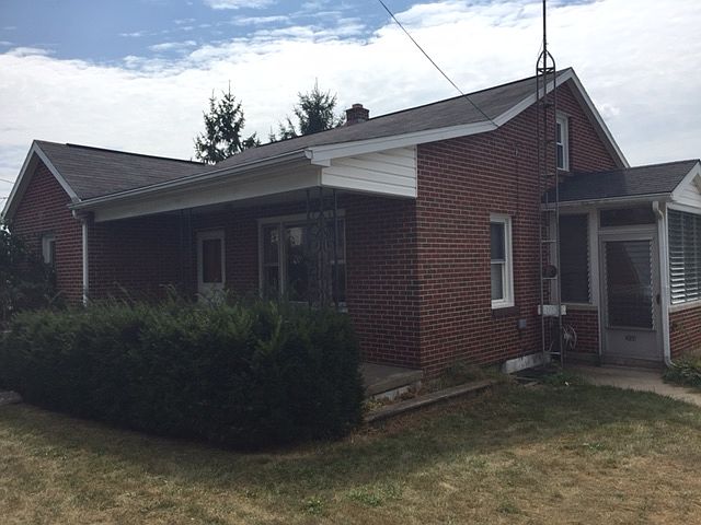 Charming brick rancher has 2 bedrooms and 1 bathroom, large kitchen, living room, hardwood floors, and shed.