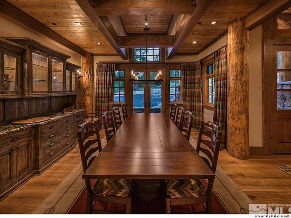 Set against the breathtaking backdrop of Jobs Peak and nestled among serene aspens and pine trees with a nearby stream, lies the enchanting Toiyabe Lodge. This expansive 3.92-acre property offers a spectacular setting. Every custom detail crafted by skilled artisans, making this geothermal sustainable lodge a true masterpiece. Inspired by the timeless elegance and natural beauty of Yosemite's Ahwahnee Lodge, the owners sought to recreate their own version of this iconic retreat called Toiyabe Lodge., This outstanding lodge is dressed with Stickley furnishings and is selling turn-key! Features include soaring arched trusses at entryway, an awe-inspiring living room with a massive stone fireplace and perfectly placed windows that capture the stunning beauty of the picturesque setting. Step out through the French doors to the covered patio and take in the breathtaking views. This grand space of over 4000 sq. ft. is designed to impress, offering an unparalleled sense of comfort and luxury. The kitchen exemplifies the fusion of rustic elegance and modern amenities. featuring Brazilian granite countertops, intricate custom wood accents, beautifully designed custom cabinetry, and a charming black walnut breakfast nook. Equipped with state-of-the-art appliances, including a temperature-controlled wine refrigerator, this kitchen ensures a top-tier culinary experience. The expansive custom pantry with built-in shelving and a dedicated coffee station enhances convenience and style. The primary suite is a masterpiece of artisanal craftsmanship, with intricate ceiling details and a warm and cozy fireplace. French doors open to a private patio where you can enjoy the soothing stream and immerse yourself in nature. The primary bathroom offers a spa-like experience with luxurious fixtures and a tranquil setting. No expense was spared in implementing top artisans, exemplified by Steve Handelman's meticulously crafted lighting, enhancing both indoor and outdoor spaces with a warm, inviting ambiance amidst the great outdoors. Adjacent to the main living areas are a library/office and a charming family room with a rock fireplace provide cozy spaces for relaxation. The beautifully appointed guest bedrooms, bathrooms, and laundry room ensure comfort and convenience. The oversized garage accommodates up to four cars or two cars alongside a boat and ATV's, featuring a Tesla charging station, custom workshop, ample storage space. The owners have meticulously crafted plans for a bunkhouse, now submitted to the county for approval. Their vision? A vibrant, inviting space designed for the ultimate enjoyment of children and grandchildren alike—a place where fun and cherished memories come to life. The lodge's prime location offers easy access to Lake Tahoe, with boating, skiing, nightlife, and hiking/biking trails at your doorstep. Reno International Airport is less than an hour away, and Minden Airport is just a few minutes away for private planes. Escape to Toiyabe Lodge nestled amidst the serene beauty of Jobs Peak Ranch. Whether you're unwinding by the stone fireplace, exploring pristine forest trails, skiing or boating in Tahoe, or simply savoring panoramic views from your patio, every moment at Toiyabe Lodge is designed to transform your retreat into an unforgettable experience of comfort and tranquility. Welcome home to your mountain sanctuary.