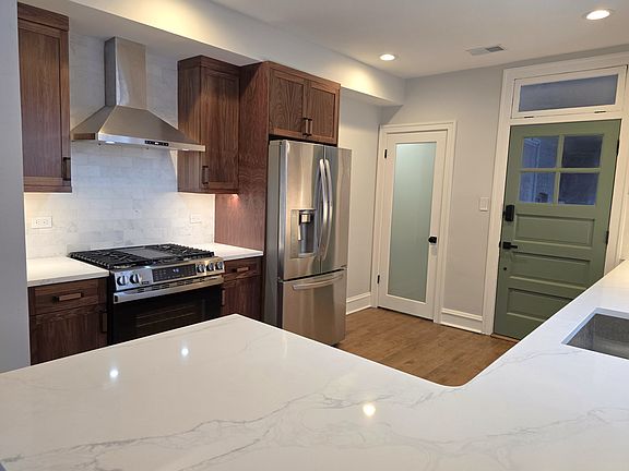 Enjoy a brand-new custom-designed kitchen featuring rich walnut cabinetry, sleek quartz countertops, full marble backsplash, and stainless steel appliances. Carefully planned lighting enhances or softens every space.