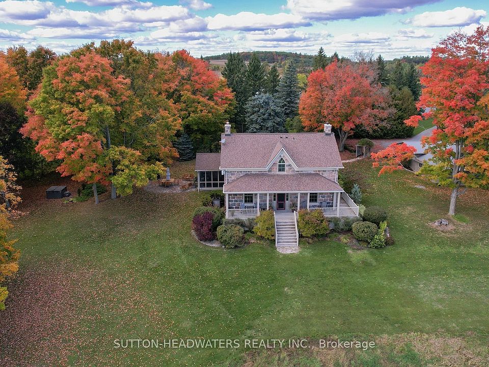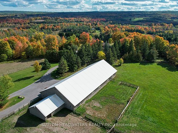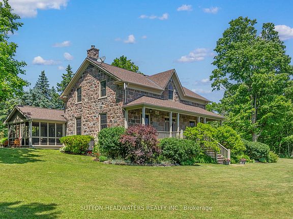 Welcome to Leachcroft, a timeless 38-acre country estate in Northumberland County. This fully restored 1856 Century Stone Home with a board & batten addition blends historic charm with modern comfort. Offering 4 bedrooms, 3 baths, and over 3,170 sq. ft., highlights include original hardwood, a bright eat-in kitchen with fireplace, elegant dining room, great room with beams & stone fireplace, and a screened porch leading to a stone patio with hot tub. Main floor guest suite plus spacious primary with ensuite upstairs. The property boasts perennial gardens, private trails, a pond, and panoramic views. An equestrian dream with a heated 6-stall barn with hay loft, wash stall, washroom, tack & feed rooms, 60x120 indoor arena, outdoor sand ring, run-in, paddocks, hayfield and riding trails. Outbuildings include a garage, drive shed, and ample storage for hobbies or collections. Equipped with industrial Generac generator. Located just 90 mins from Toronto, this estate offers tranquility, recreation, peace of mind and refined rural living.