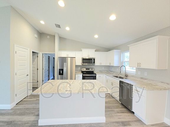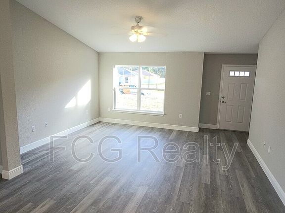 This home in the growing Ocala area features a thoughtful split floor plan with modern finishes throughout. The kitchen includes granite countertops, a spacious pantry, and storage with whisper-quiet doors and drawers. Granite accents extend to the bathrooms and bedroom ledges.The primary bedroom is generously sized with an oversized closet, and the private bathroom offers a walk-in shower with a linen closet. Guest bedrooms are also well-sized, providing ample space. Additional features include a laundry area leading to a two-car garage and a screened-in porch in the back of the home.