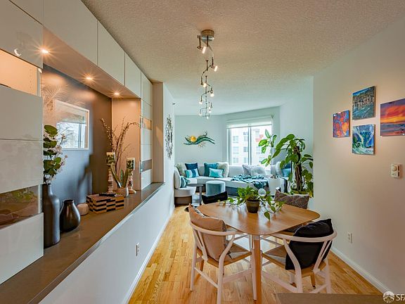 Move-in ready 1-bedroom, 1-bath condo in the Parc Telegraph building, located in San Francisco's vibrant North Waterfront. This updated home features wood floors throughout, an open living/dining area, and a modern kitchen with quartz countertops, tile backsplash, and sleek lacquered cabinetry. The bedroom includes a walk-in closet and a cozy nook perfect for a desk or reading chairplus peek-a-boo Bay views. Amenities include 24/7 security, doorman, on-site property manager, fitness center, library, community room, guest suite (available to rent), complimentary laundry rooms, and 1-car garage parking. Close to the Embarcadero, Ferry Building, and waterfront trails.