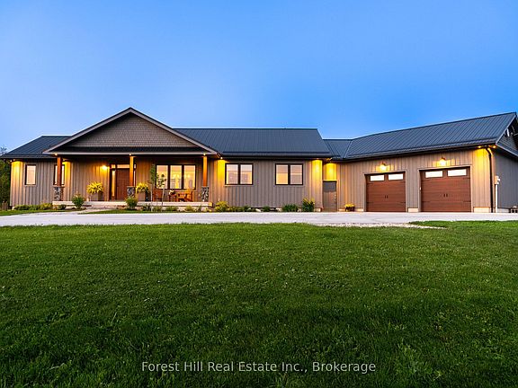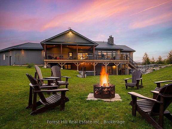 Discover elevated country elegance on 20 acres in the heart of Grey County a casual yet refined private retreat designed for both sophisticated entertaining and serene everyday living featuring stunning sunrise and sunset views and a seamless connection to nature. The Great Room commands attention with a floor-to-ceiling stone fireplace framed by an antique barn beam mantel and expansive windows capturing breathtaking vistas. Step outside to a covered deck ideal for outdoor entertaining or enjoy the gourmet kitchen featuring high-end appliances and a versatile Butler's Pantry with a second fridge and dishwasher, ideal for hosting with ease. The fully finished lower level is designed for luxury and versatility: in-floor heating, two additional bedrooms, a spacious rec room with wood-burning fireplace, kitchenette, bunk room (this home easily sleeps 14!), and a walk-out to a new hot tub & covered patio area. Additional highlights include the covered front porch (the ideal spot for watching the sunset), an oversized, heated, insulated double garage with durable Trusscore paneling, a meticulously landscaped yard with native plantings, mature trees, private walking trails through a managed forest and multiple activity areas. Outdoor enthusiasts will appreciate easy access to the Bruce Trail, Irish Lake, Lake Eugenia, Saugeen & Beaver Rivers, and nearby ski clubs offering 4-season recreation just minutes away. Perfectly situated close to Flesherton, Markdale, and Durham for daily conveniences, with Collingwood and Owen Sound within easy reach. This Lookout Drive property offers unparalleled privacy, refined luxury, and a lifestyle rich in adventure. More than a home, its a private country estate where comfort, seclusion, and elevated living converge. **Note: To help maximize value, sellers are taking steps to seek severance approvals affecting 3 acres. Details available for serious inquiries.