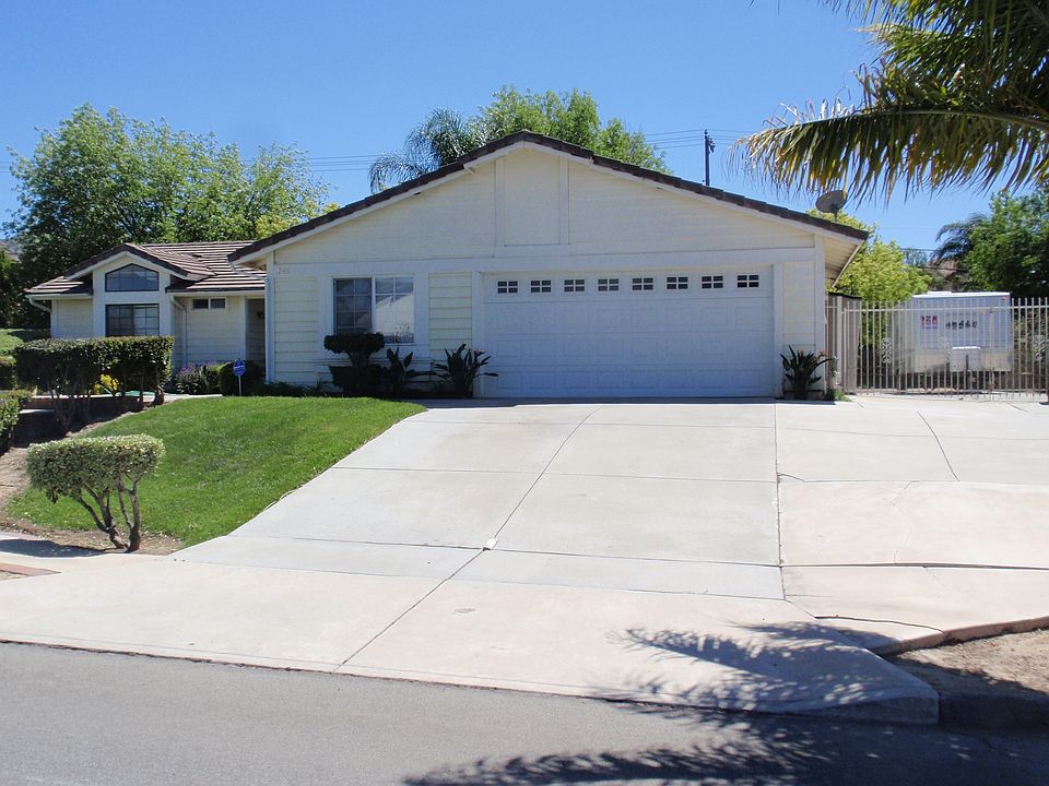 Lovely and well kept home in quiet and scenic neighborhood of Highgrove, Riverside, adjacent to Grand Terrace. 3 Bedrooms plus a den that can be an office or another bedroom. Two baths, one located in the master bedroom. Floor is a mix of tile, wood laminate and partial carpeting. New granite counter tops in the kitchen. Walk to elementary school , public library, fire station and community center. Covered patio in the backyard is perfect for picnics and barbeque. Lot is almost half acre with beautiful front and backyard landscaping providing ample playground space. Concrete half basketball court in the backyard provides private family recreational area and spacious paved RV parking in the side for all your toys. Get the feeling of living in the countryside but close to metro Riverside and San Bernadino areas. Horses are welcome here. A property like this is hard to come by nowadays. Must see to appreciate. Sold As Is.