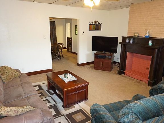 You'll love these room sizes! Large updated kitchen with oak faced cabinets, 2 lazy susans plus 2 large corner cabinets .Updated bath with ceramic tile flooring. Den/nursery adjacent to the master bedroom, plus a full 3rd floor providing ample storage, just add heat and you have additional living area for family room, man cave or play room. 2 car detached garage with wood burning stove. Covered front porch, perfect for taking in the view. New electrical service & panel. Last home on dead end street, sloped lot, private & quiet. Good sized storage area from basement to front yard. Pine floors under carpeting. Nicely painted interior. Glass block windows in basement. Duss Park plus multiple baseball/softball fields just minutes away.