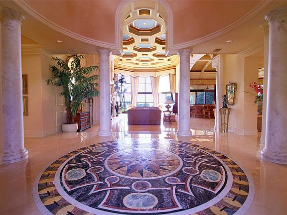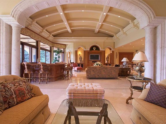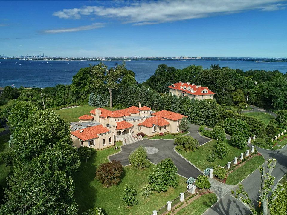 Video Tour A Must See! Majestic breathtaking vistas from this magnificent 6 bedroom secluded waterfront estate. Once in a lifetime does an opportunity so unique come on market. Glamorous entry foyer with soaring ceilings, grand open layout throughout, expansive living room with an intricate marble fplc, formal dining room with water views, gourmet eat-in-kitchen with a wall of windows overlooking the lush grounds, Mater en suite located on the first floor with double walk in closets and two separate bathrooms and private office, in home elevator, movie theatre, gaming room, billiards room, and indoor pool. The property has a separate cottage with an extra 3 car garage, ideal for guests.