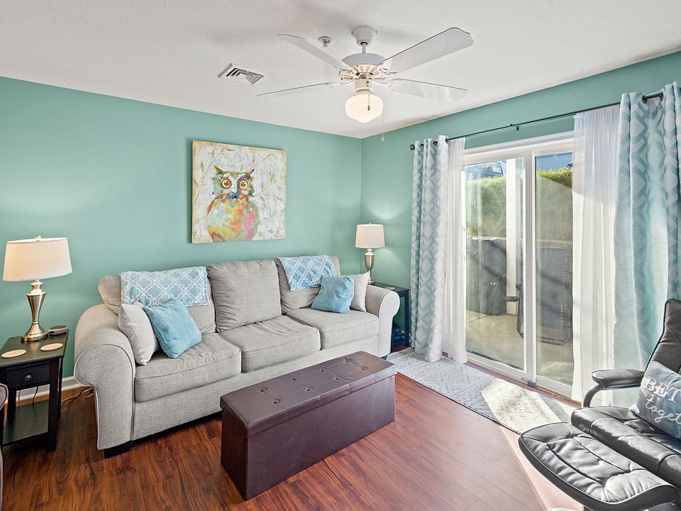 New appliances in 2018. New furnace / central AC. ONE FLOOR LIVING! vinyl plank flooring throughout. Secured building. Corian countertops in the kitchen and stainless steel appliances. New washer and dryer in unit. Central AC. Forced hot air electric heat. Private ground level concrete patio area with sliding glass door. Bike storage available as well. Comcast - High speed Internet accessible area.