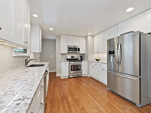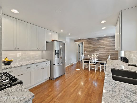 Enjoy the best of stress free living in this updated, move-in ready, 3 bedroom, 1.1 bath ranch in up and coming area. No detail has been overlooked in this beautifully finished home including hardwood floors throughout main level, raised panel doors with lever handles, custom window coverings and convenient built-ins. The roofs on both home and garage, windows, plumbing and electric are all less than 2 years old! The kitchen boasts extra tall white shaker cabinets, granite countertops and subway tile backsplash. New full bath features floating vanity and storage niche with extra drawer space and open shelves. Finished basement adds amazing family room and storage space with new half bath in basement has rough in for shower. The lot is both extra wide and deep and is beautifully landscaped and fully fenced. Gracious front porch, is complemented by relaxing back porch as well as large patio and fire pit. Walk to Metra, Prairie Path and vibrant downtown Villa Park!