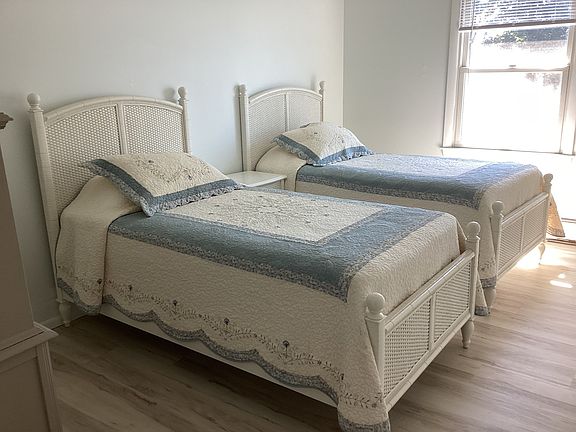 Inside, the space is clean and modern with all new floors and white walls. The all-new kitchen is well designed and easy to work in, complete with a coffee maker, microwave, full-size fridge, and an eat-in dining area that flows into the living room. Comfortable leather sofas, a TV, and extra seating make the living area great for hanging out. The layout is bright and spacious; one bedroom has a king bed, the second has two twins, and the third is a flexible den with desk and a twin sleeper sofa. Two full baths, in-unit laundry, and thoughtful details throughout make it easy to settle in. You'll also have a garage plus off-street parking, which can be rare in waterfront spots. A small dog may be considered with approval.