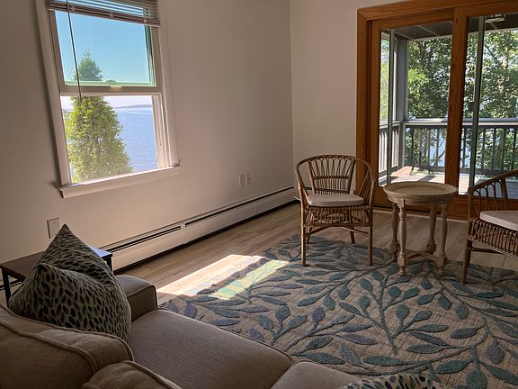 Watch glorious sunsets from your porch and terrace in peaceful Riverside, just 15 minutes from all Providence has to offer! Two bed, two bath apartment in 2-unit house with water access and spectacular water views. Living room, kitchen, porch, one bedroom (king-size bed ) and one bath on first floor. One bedroom (queen-size bed ) and one bath on ground floor with walkout to terrace and water. New kitchen, appliances, floors, and fixtures. One garage space, plus off street parking. 10 minute-walk to beaches at Crescent Park and Sabin Point, two-minute ride to East Bay bike trail. A/C, washer/dryer. Small pet if approved. Month-to-month rent $3150 including all utilities and free WiFi, summer rates higher. 12- month lease rent $2900, tenant pays electricity, landlord pays other utilities. Available in mid-December, furnished or unfurnished.