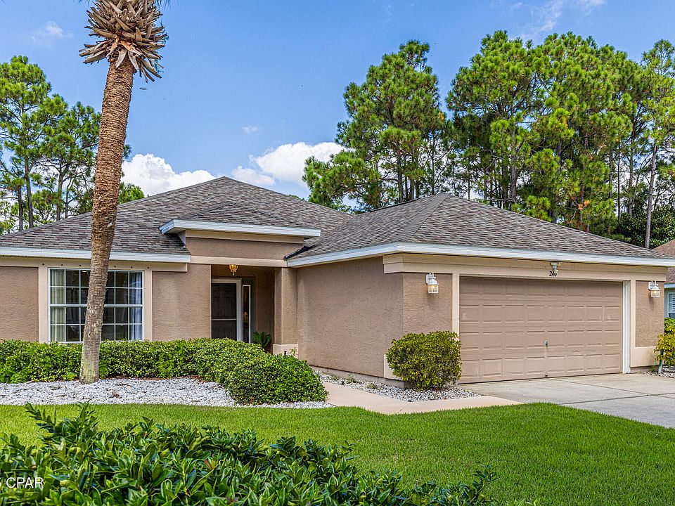 This fantastic one-level home is located in Palmetto Trace, a pristine, non-rental St. Joe community just north of Pier Park and only one mile from white sandy beaches and the Gulf of Mexico. Offering the best of both worlds, this home allows for peaceful, residential living while being conveniently close to shopping, dining, entertainment, Frank Brown Park, a fishing pier, and two nearby public beach access points—easily reached by golf cart from the community.