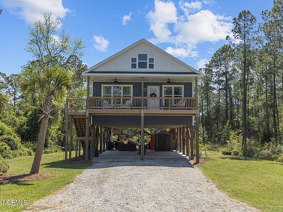 This well maintained property is located across from the waterfront with a great front porch to catch the exceptional views of the Neuse River. Two bedrooms with a flex room that could be used as a third bedroom, office, den...etc. The kitchen has a large island, farmhouse sink, and stainless appliances. The spacious master bedroom has a walk-in closet and opens to the back deck. The master bath has a double vanity, soaking tub, and a large step in tile shower. Underneath the home there is plenty of room for vehicles, boats, jet skis...etc. There is a canal at the rear of the property and the neighborhood offers beach access, two ramps, and boat slips. Great area for boating, fishing, watersports, and it is only 25 minutes from Historic Beaufort.