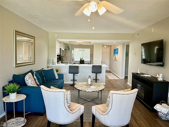 Available NOW! Annual or Seasonal Rental! This stunning TURN-KEY FURNISHED 2-bedroom, 2 full baths condo in Lely Golf Estates has been newly renovated, is immaculate, and features new furniture throughout. The open floor concept creates a bright and airy atmosphere throughout the living spaces. The screened-in lanai offers a serene view of the Hibiscus golf course. The primary suite features a king size bed and large walk-in closet plus the primary bathroom offers a spacious walk-in shower and dual vanities. Guest bedroom has two twin beds and a spacious closet. The guest bathroom is well-appointed with a bathtub and shower combo, perfect for relaxing baths or quick showers. The kitchen boasts plenty of cabinets, a large pantry, a breakfast bar, and eat-in kitchen area. Convenient parking is available under the carport with easy access to your unit. Enjoy the community amenities, including a pool and park area. Short drive to Hibiscus Golf Club if in mood for golfing! This prime