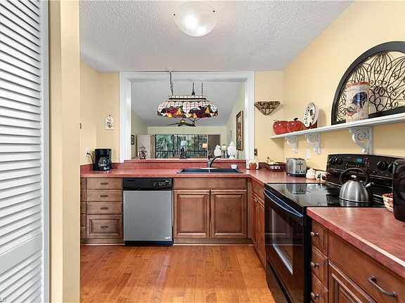 Prime Location! Rarely available second-floor unit in Abbington Village of Lely Golf Estates! This unit features 2bedrooms/2bathrooms with new updated wood flooring, feels spacious due to volume ceilings and open floor plan, large walk in closet in the master bedroom, a spacious kitchen, a lovely eat-in dining area with plantation shutters, and an extend screened in lanai offers privacy a great place to relax with extra storage and access from the master bedroom. The community offers low association fees, new roof 2022, a community pool, a short drive to all the shopping, Publix, banks, dining, and beaches Naples has to offer. This condo could be a year-round home or a vacation getaway.