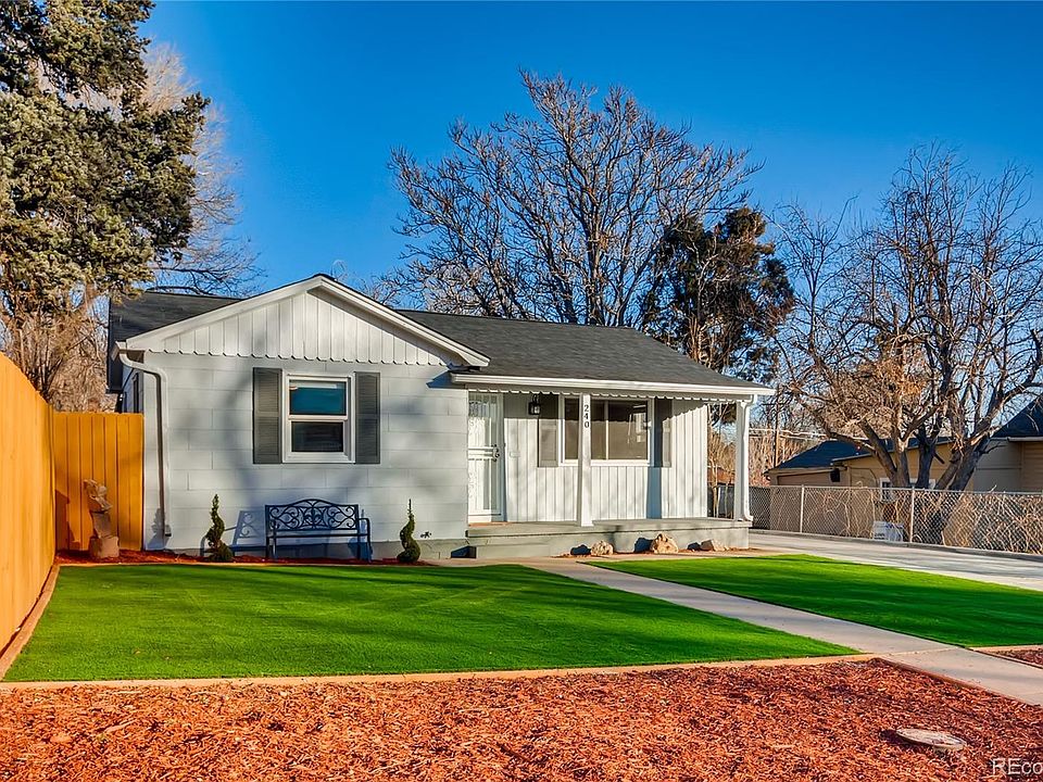 GORGEOUS Remodeled home in the heart of Denver!!! 3 CAR DETACHED GARAGE!! Beautiful hardwood floors through out!! Lovely kitchen with granite counter tops, stainless steel appliances, new cabinets, plenty of dining space. Cozy family room. 2 bedrooms with spacious closets. Stunning bathroom with new tile, new vanity and new lighting fixtures. Enjoy your morning coffee on your front porch overlooking your beautiful zeroscaped front yard!! Perfect sized backyard great for those summer BBQ's. Deck AND covered patio. Brand new roof, brand new interior and exterior paint, brand new water heater, brand new AC unit. Brand new zeroscaped front and back yard!! Don't miss out on owning this wonderful home in great location!!