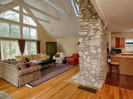 Mystic Lake Lynxholm Estates. Contemporary Cape, 2 deeded beaches, well-maintained, gas heat/AC, situated on 1 acre +/- tranquil lot. Great open floor plan offering a large family room with cathedral ceiling and a spectacular floor-to-ceiling stone fireplace. Kitchen with breakfast bar, new SS refrigerator, dishwasher. Separate dining room, 1st-floor bedroom with wide pine floors and 1st floor full bath. Master suite on 2nd floor and add'l bedroom with 1/2 bath and view of Mystic Lake. Lower level finished bonus room. Spacious back yard on natural setting with large deck, completed by 6-Ft stockade wooden fencing for extra privacy. This information is not warranted or guaranteed and should be independently verified if any person intends to engage in a transaction based upon it.