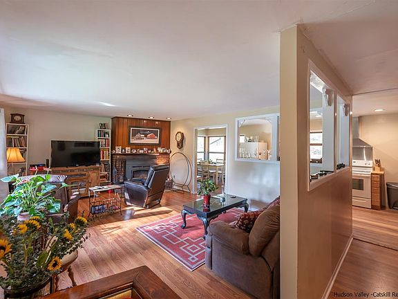 There is no denying the allure of owning a home in the historic village of Stone Ridge...the perfect location between Kingston, New Paltz and all the recreational, cultural and dining choices that abound in the Rondout Valley. This sweet brick ranch sits well off a dead end road, up a convenient horseshoe driveway. While still retaining much of it's mid-century charm, the updated eat-in kitchen is bright and airy, opening up to the living room beyond. All 3 bedrooms are well sized, and the primary bedroom has a ½ bath en suite. The full, dry basement could easily be finished as a rec room or den. The beautiful brick fireplace in the living room has an insert that efficiently heats the entire house. The grounds are park-like, with a lovely variety of mature trees, shrubs and perennial plants. Priced to sell, don't miss this beautifully maintained and affordable home that offers much for the fulltime or part time resident!