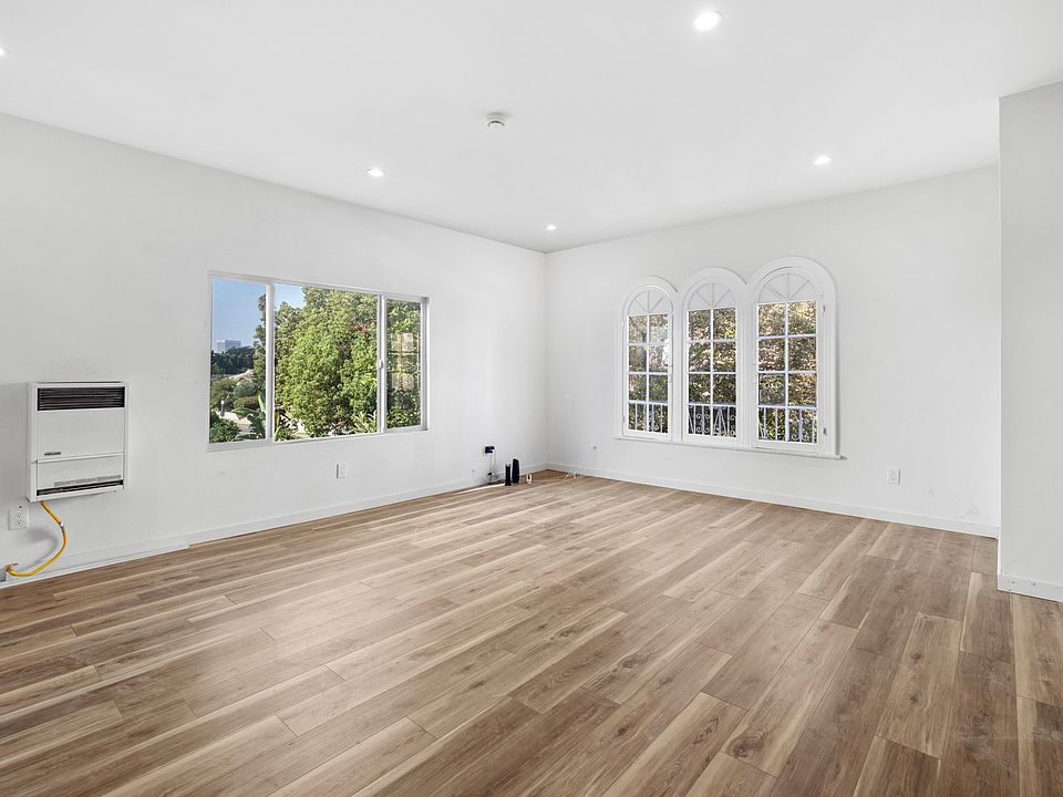 Spacious 900 SF One-Bedroom Apartment Available. Be the first to live in this newly renovated, extra-large one-bedroom, one-bathroom apartment located just two blocks south of Silverlake. This top-floor corner unit has undergone a complete overhaul, including new electrical and plumbing systems, recessed lighting, and brand-new windows. Modern appliances, including a refrigerator, stove, garbage disposal, and stackable washer and dryer. As part of an eight-unit building with charming 1920s architectural details, this unit offers bright views from the kitchen and living room, ample space, and an extra large bedroom. The building has amazing views of Downtown LA, Koreatown, the Hollywood Sign, and the Observatory. Owner pays for water. Tenant pays for electricity, trash, and gas service. New 12 month lease agreement.