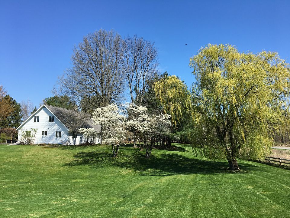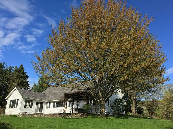 Enchanting country home with hobby winemaking vineyard. Beautiful open landscape with rolling hills and extraordinary Catskill Mountain views. Enjoy sunsets over the mountain from stone patio with vine-sculptured pergola. A little taste of Tuscany in the Hudson Valley! Great location: 8 miles to Hudson, 11 miles to Chatham. Ground floor: 3 Bedrooms (1 with fireplace), 1.5 baths. Living/dining room with fireplace. Open country kitchen with tiled eat-in bar for 2. Sunroom with walkout to stone patio. Washer/dryer utility room. 2 car attached garage. (2289 sq feet) Lower floor: Semi-finished basement with 1 Bedroom and attached bathroom. Spacious, open room for recreation, home gym, theater or large bedroom. (1900 sq feet) Upper floor: Unfinished high-ceiling large space perfect for master suite, home theater or artist studio. Outdoors: Hill in back of property overlooking rows of grapevines with views of valley and Catskill Mountains. Vineyard capable of producing ~20-25 gallons of wine per year. Plenty of land to plant more vines! Professionally-designed & maintained lush gardens with pond water feature. Stone patio with pergola and granite slab outdoor dining table. Running stream bordering far end of property. Fenced in 3 acres for pets. Total privacy.
