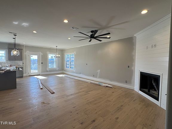 Beautiful family friendly, 4 bedroom, 3 bath home with 2 living spaces conveniently located in Spring Ridge subdivision in Jonesborough. Upon entering, you are greeted with an inviting 2 story foyer leading to an open floor plan. The living room is perfect for entertaining offering hardwood flooring, a custom natural gas fireplace and is open to the dining area and kitchen. The chef of the family will fall in love with the kitchen's design offering plenty of cabinetry (soft close door and drawers), quartz countertops, tiled backsplash, stainless appliances and a 6' island. The MAIN LEVEL primary suite showcases tray ceilings, accent wall, dual vanity sinks, custom tile shower and walk in closets with custom shelving. There is an additional bedroom on the main level with a full bathroom right outside. The second level offers a spacious family/den area that is sure to provide your family with the extra living space needed. The 3rd and 4th bedrooms are generously sized and each have large closets. Unwind in the evenings on the covered back patio overlooking the private backyard. Spring Ridge Subdivision is brand new and located in the heart of Jonesborough near downtown, resturants, schools and shopping. This quality home has a 1 year builder's warranty. Taxes to be assessed. All information herein deemed reliable but subject to buyers verification.