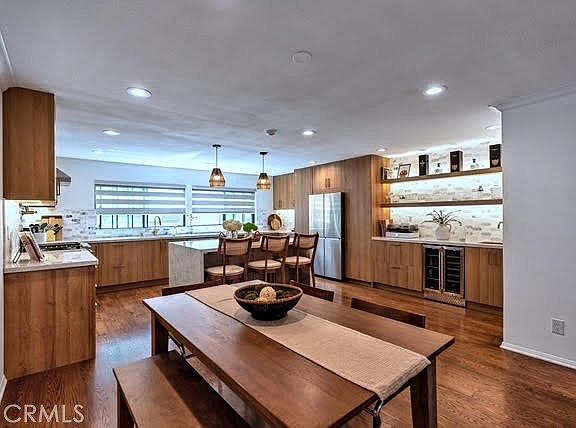 Coastal Living Just Blocks from the Redondo Beach Pier!!! This bright and airy townhome offers 2 bedrooms, 2½ bathrooms, a loft, and a versatile basement in a prime Redondo Beach location, just minutes from the sand and pier. The gourmet chef’s kitchen is a standout feature, boasting elegant Taj Mahal Quartzite countertops that wrap around the expansive waterfall island, along with a wet bar, wine fridge, Samsung top-of-the-line refrigerator, and stainless steel appliances. Both the primary and guest bedrooms feature ensuite bathrooms, and the guest bathroom and powder room have been tastefully updated. The primary suite includes a loft ideal for a home office and a private balcony—perfect for soaking up the sun or enjoying a glass of wine while watching the sunset. Accessible from the attached 2-car garage, the basement offers flexible space for a gym, media room, or bonus area, complete with a convenient washer and dryer. The living room features a cozy gas/wood-burning fireplace and flows to a spacious deck, ideal for barbecues, outdoor dining, or simply savoring the refreshing ocean breeze. Recent updates include a newer furnace and water heater, both replaced just three years ago. Enjoy morning walks to the beach and evenings with breathtaking sunsets. With low HOA dues of only $300 per month, a friendly neighborhood, guest parking, and plenty of street parking, this home perfectly blends coastal lifestyle with everyday comfort.