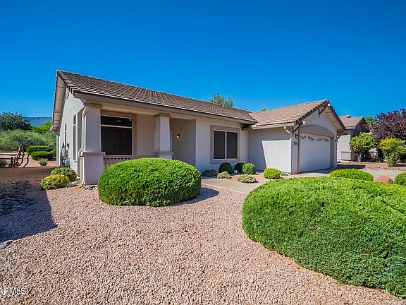 Enjoy the oversized garage with built-in storage and a dedicated workspace. Step out back to a generous yard with breathtaking views of Mingus Mountain, perfect for relaxing or entertaining under the covered patio. The clubhouse is just a short walk away, offering convenience and community amenities.