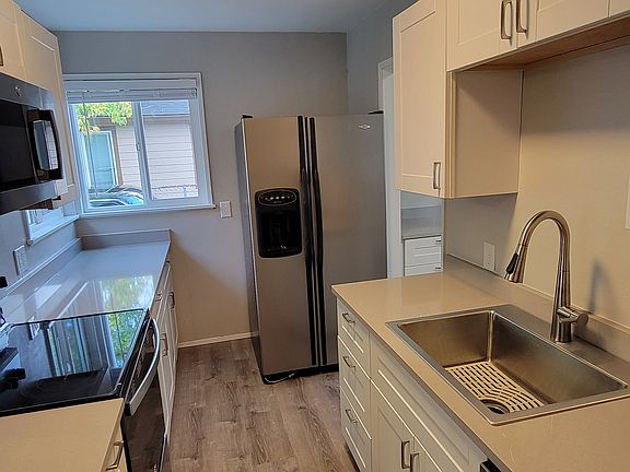 Fully fenced yardLarge patioRemodeled bathroomRefinished hardwood floorsNew milgard vinyl windowsNew kitchen cabinetsNew light fixtures