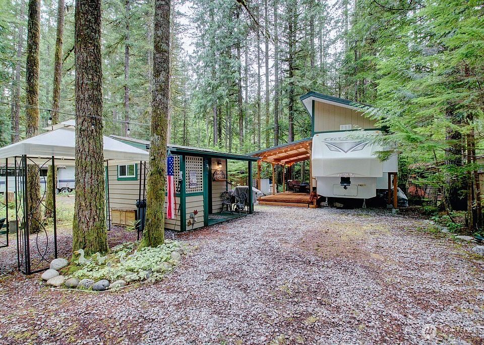 Private feeling large 5227 sqft lot with beautiful covered deck and insulated shed that can be used as a flex space or storage. Well maintained 2010 Crossroads Fifth wheel on very quiet dead end cul-de-sac in centralized division 6. Large auxiliary roof with lots of storage over fifth wheel. The Glen is zoned recreational for 120 days of use out of the year and has all the amenities you could want, including 2 pools, hot tub, tennis court, library, laundry mat, 2 clubhouse, 24 hr security, gated entry, & play areas. Trailer is register in Canada.