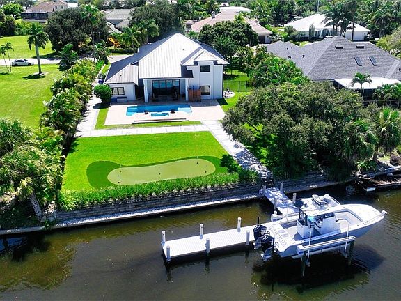An exquisitely re-imagined waterfront residence on one of the largest lots in Vero Isles. Completed in 2025, this 3,382?sq?ft estate blends craftsmanship, innovation, & modern elegance. The stately entrance w/ pivot front door opens to a two-story great room, travertine floors & expansive water views. The chef’s kitchen features luxury appliances. The primary suite offers a state-of-the-art walk-through digital rain shower. The resort-style backyard includes a heated saltwater pool & spa, fire bowls, putting green, & a brand-new dock w/ lift, plus deep water access all in an ideal location.