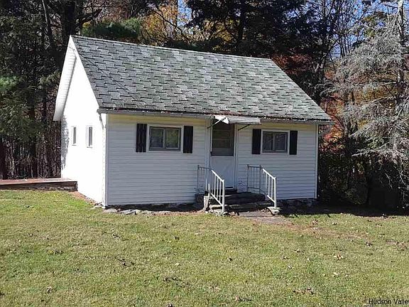 Approximately 1 1/2 hours from NYC in small hamlet outside of Kingston NY, a 200 year old stone home with deep walls, board floors and oodles of charm. There is a 20 x 22 foot guest cottage that needs interior redo and a large 36 x 26 horse/carriage barn which would make a superb studio. Living room has original built ins and almost 6 foot wide fireplace. Kitchen has early bread bake oven and brick fireplace. Large den adjoins the living room and could easily be used as a master bedroom with walk in closet space. (also good spot for 2nd bathroom). Large pond on house side of property. Property is divided about 50/50 on both sides of the road. This is a first time offering in over 60 years. Barn and cottage being being sold "as is". House has been kept well over the years and utilities fairly recent. Barn has separate 60 amp service. Perfect country getaway at reasonable price.