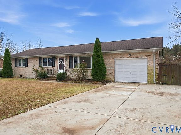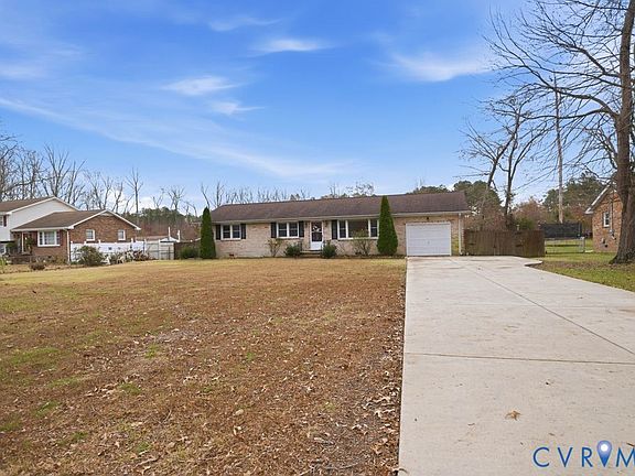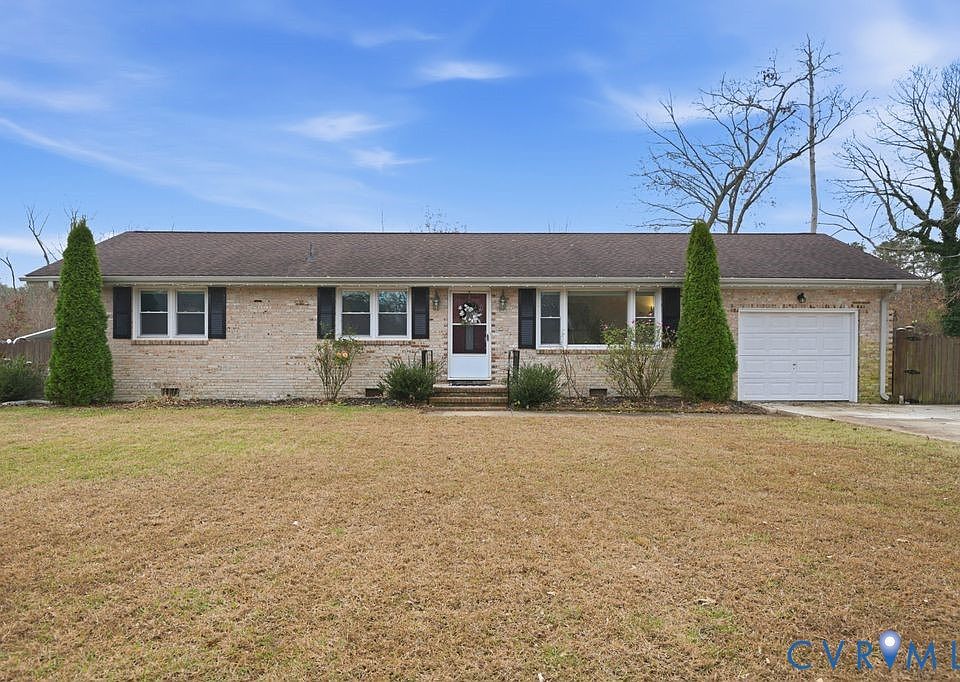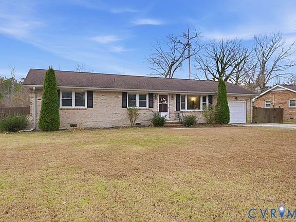 Charming Brick Ranch with Spacious Yard & Modern Comforts – Welcome to this beautifully maintained 3-bedroom, 2-bath brick ranch nestled in the heart of Petersburg. With 1,600 square feet of thoughtfully designed living space, this move-in ready home offers the perfect blend of comfort, functionality, and classic appeal. Step inside to find a bright and inviting interior featuring gleaming hardwood floors, a spacious living area, and a dedicated office/flex room—ideal for working from home or creating a hobby space. Kitchen boasts stainless steel appliances, generous counter space, and a cozy dining nook that overlooks the large backyard. Both bathrooms are tastefully updated, with the common bath featuring a dual vanity and clean, contemporary finishes. Additional highlights include a mud room area, extra storage space, and central heating and air for year-round comfort. Outside, the property continues to impress with a newer roof (approx. 8 years young), a fully fenced backyard, a large deck for entertaining, and a handy storage shed. The double-width concrete driveway offers ample off-street parking. Located in an established neighborhood with convenient access to shopping, schools, and I-95, this home is a must-see for buyers seeking value and space. Note: Garage door present - may be able to return to garage if desired.