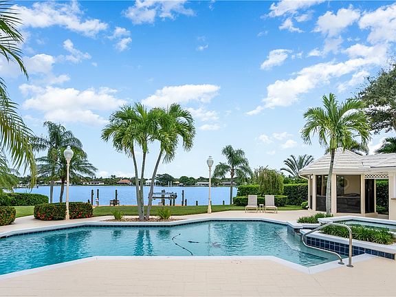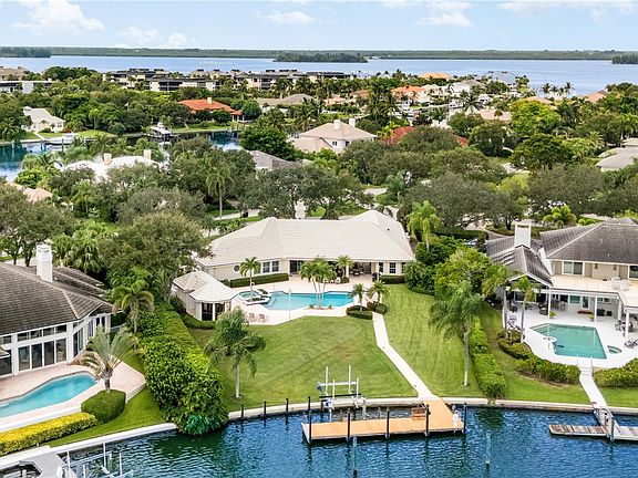 This fantastic waterfront home is perfectly sited on one of the prettiest lots in the Anchor. Boasting high ceilings, Travertine marble floors, custom millwork, large family room and charming breakfast nook. Fourth bedroom used as den/office. Immaculately maintained, you will enjoy stunning views of Compass Cove, a brand new full house generator, a salt water pool and a deep water dock with lift. The covered veranda, screened gazebo and covered bar offer the perfect backdrop for your Florida lifestyle.